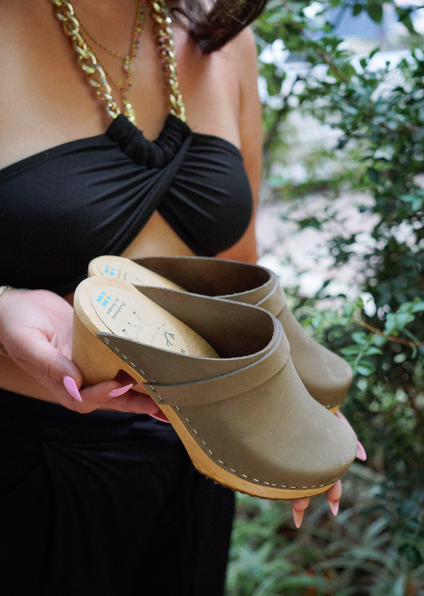 סוליית עץ קלה ונוחה ועקב בגובה 7 ס"מ.
